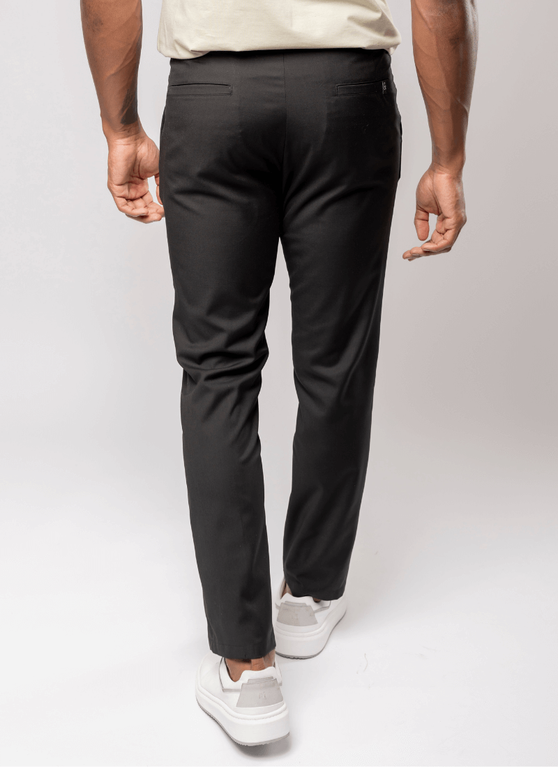 A Calça Masculina Alfaiataria Chrono Preta representa a união entre tradição e modernidade. Atemporal e versátil, é a escolha certa para compor desde produções minimalistas até combinações sofisticadas com sobreposições elegantes. O corte preciso garante caimento impecável, enquanto o preto, símbolo máximo de estilo, entrega uma presença marcante em qualquer ocasião. Um clássico absoluto reinterpretado para o homem contemporâneo.