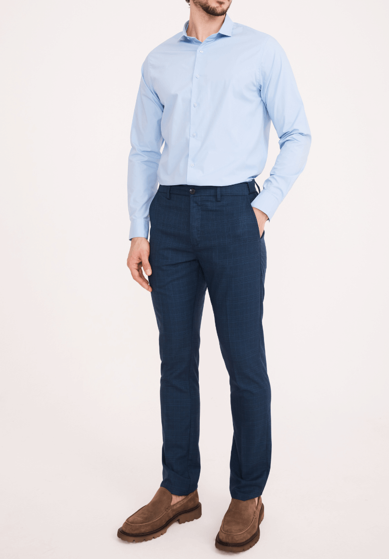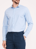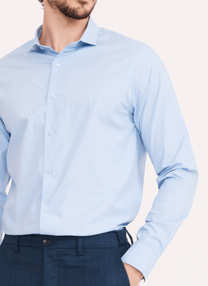 Camisa Social Masculina Algodão Orgânico Gola Invertida Azul Claro
