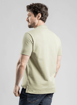 verde claro, é confeccionada em malha de algodão e viscose com toque macio e estrutura firme, garantindo caimento impecável e durabilidade. O fechamento frontal com três botões acrescenta um charme discreto ao visual, enquanto a modelagem reta com mangas ajustadas valoriza a silhueta masculina sem perder o conforto.