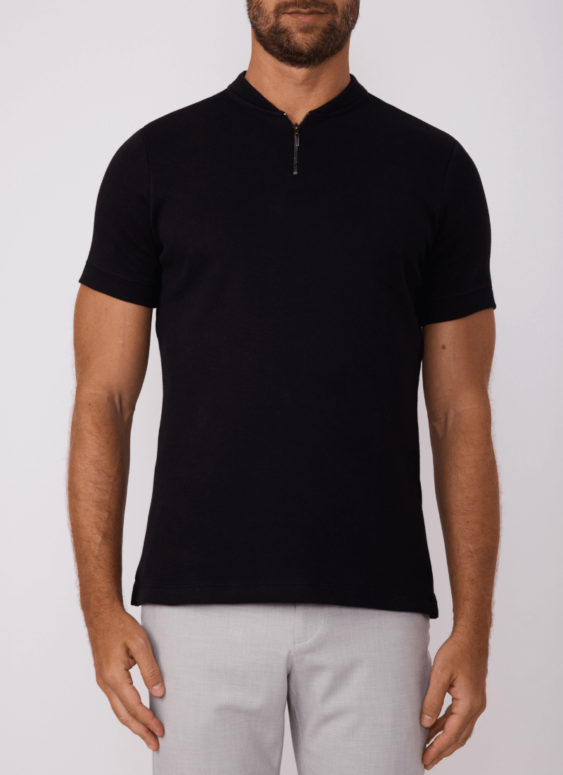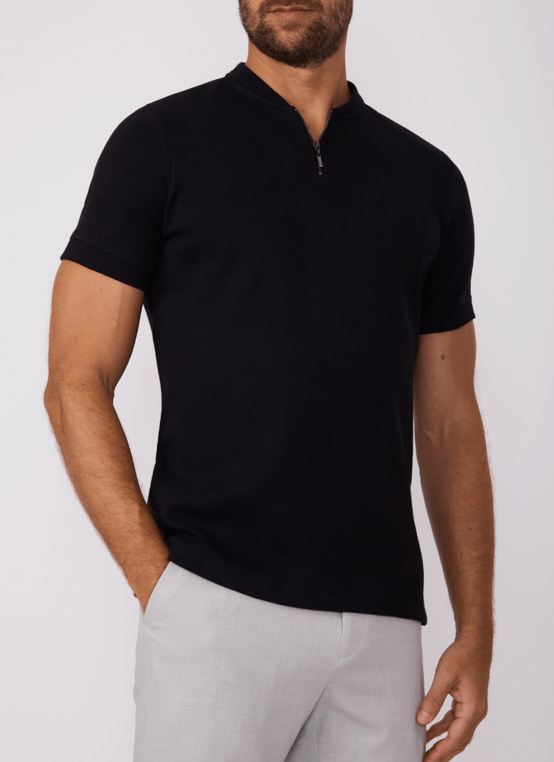 A Camiseta Masculina Gola Zíper representa o encontro perfeito entre elegância minimalista e funcionalidade contemporânea. Um clássico atualizado, pensado para o homem que deseja elevar o visual sem esforço — da rotina ao final de semana.