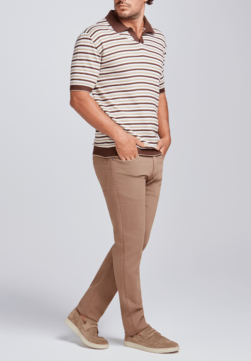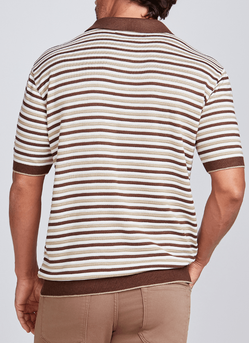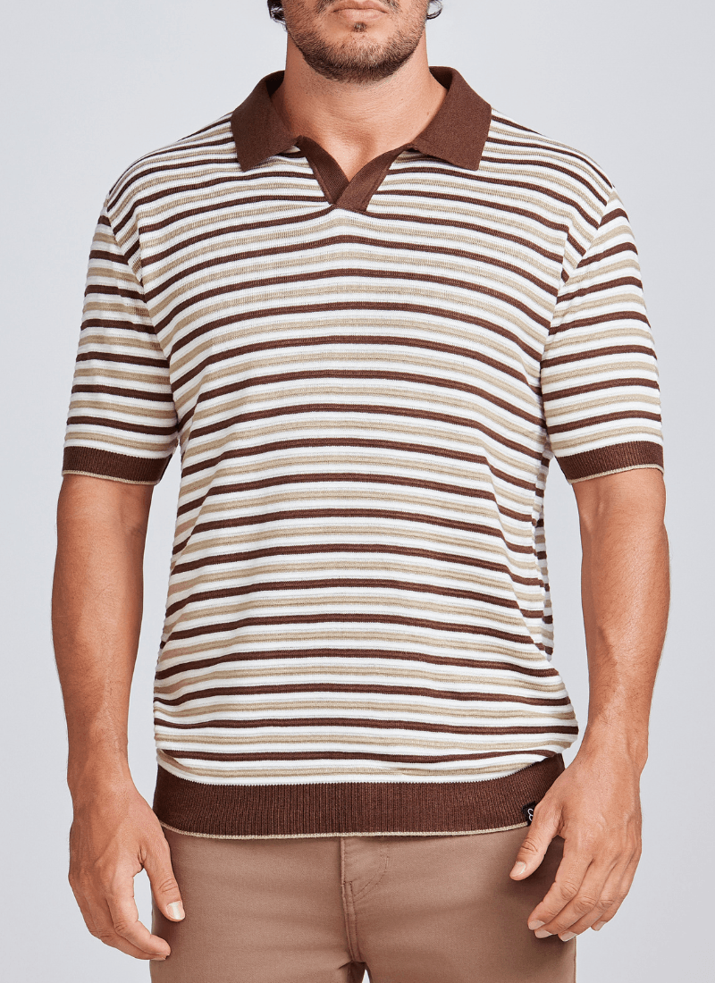 Camiseta Masculina Polo Tricot Listrada Caqui