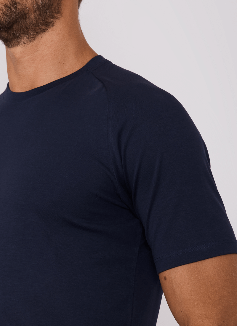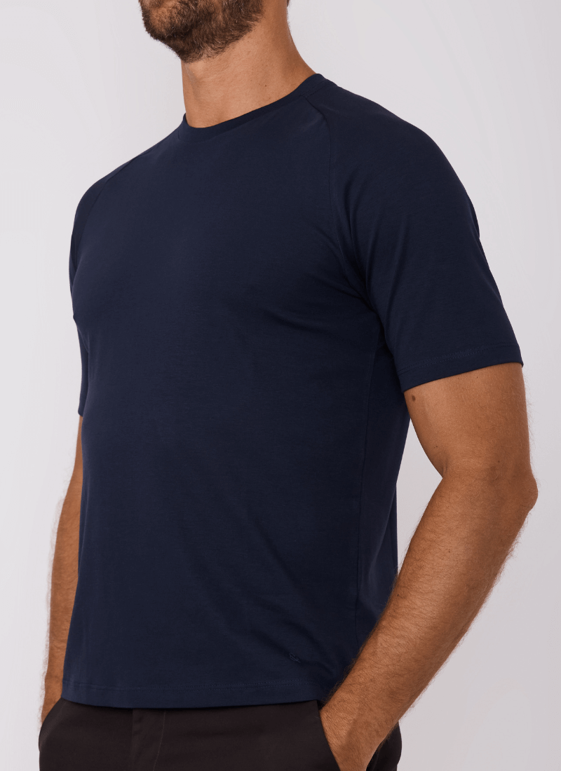 Minimalismo contemporâneo e conforto absoluto. A Camiseta Masculina Raglan Pima Balance une sofisticação discreta à performance do algodão pima peruano — uma das fibras mais nobres do mundo. O design raglan valoriza os ombros e proporciona caimento impecável, reforçando uma estética atlética e elegante.