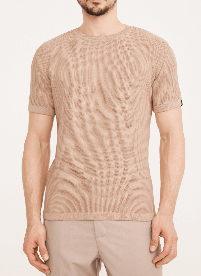 ModaCamiseta MasculinaCamiseta Gola Careca MasculinaCamiseta Masculina Tricot Falésia Bege