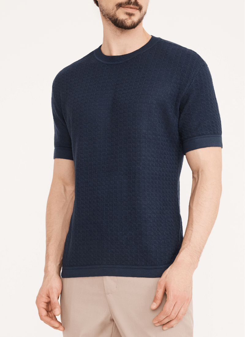 A Camiseta Masculina Tricot Groove eleva o conceito de básico com textura e sofisticação. Inspirada no visual retrô dos anos 70 — tendência forte nas passarelas e no streetwear de luxo — a peça aposta em uma padronagem geométrica que adiciona profundidade e elegância ao look, sem abrir mão do conforto.