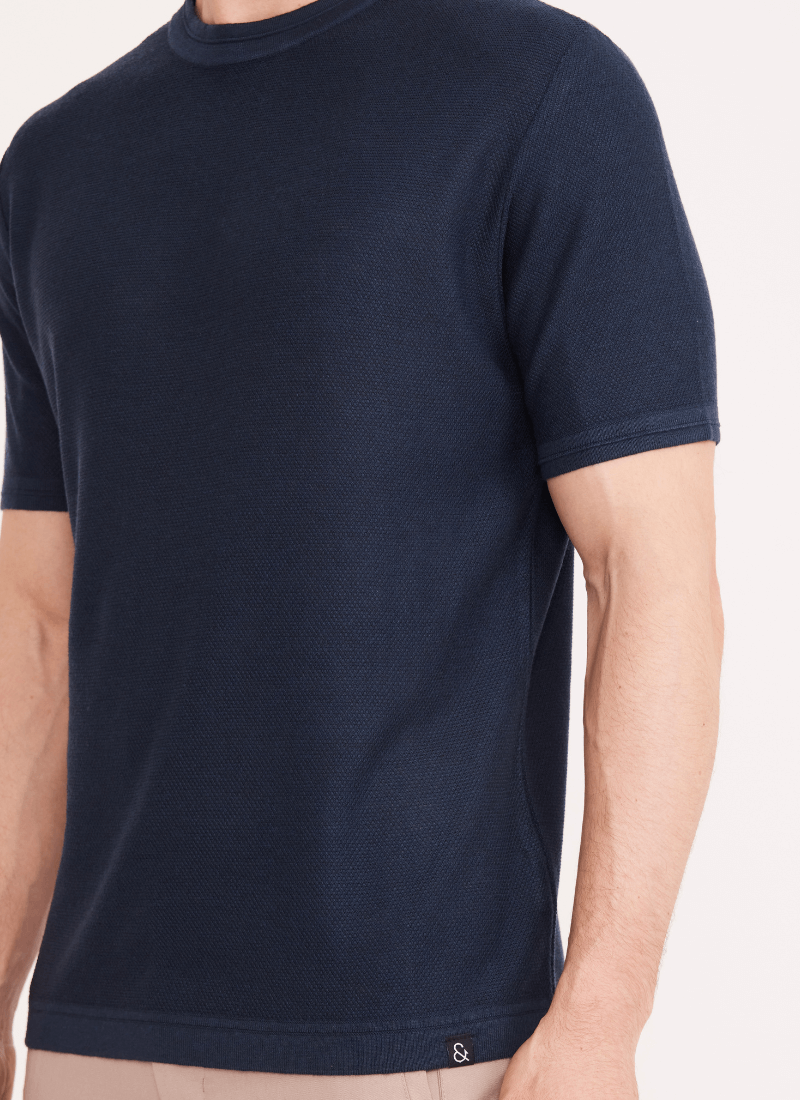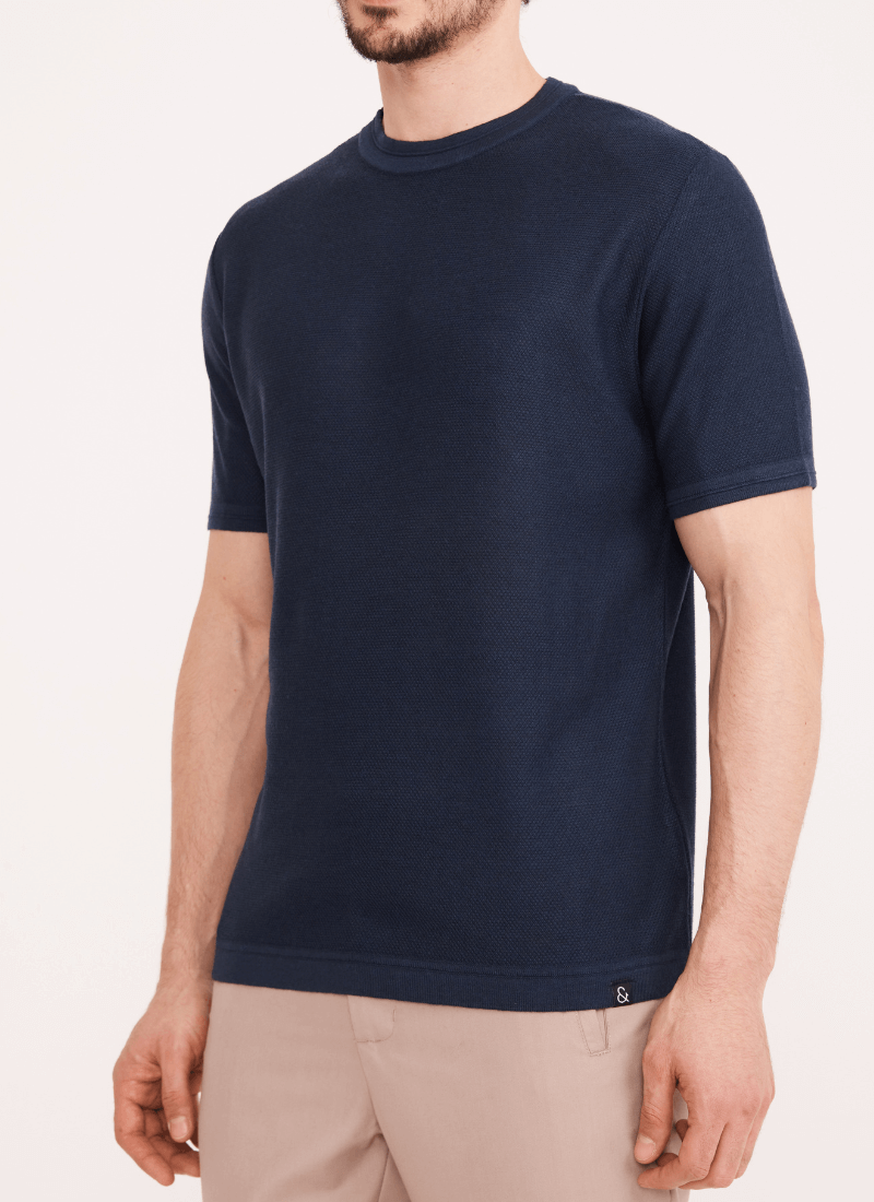 Perfeita para o homem moderno que busca versatilidade e sofisticação, essa camiseta de tricô masculina transita facilmente entre o look casual elegante e produções mais formais. Combine com calça de alfaiataria, jeans premium ou bermuda de linho e descubra o poder do minimalismo refinado que é marca registrada da moda masculina contemporânea.