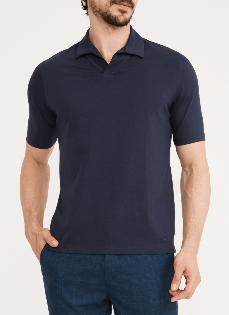 A Camiseta Polo Masculina Gola V Recortes Fusion traduz o novo luxo da moda masculina: minimalismo com presença marcante. O design com gola V sem botões, tendência em ascensão nas passarelas e ruas, garante um visual contemporâneo e descomplicado — perfeito para quem busca elegância sem esforço.