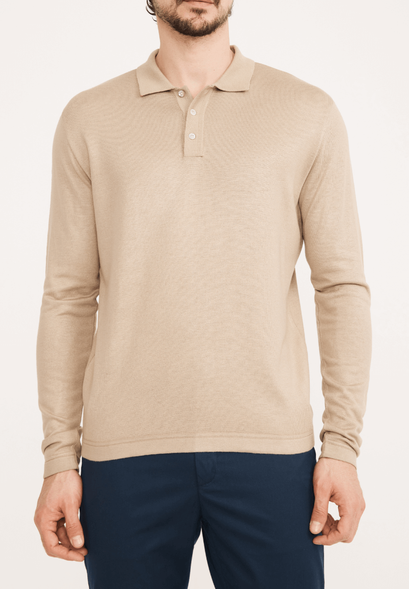 Camiseta Polo Masculina ML Tricot Vibe Caqui