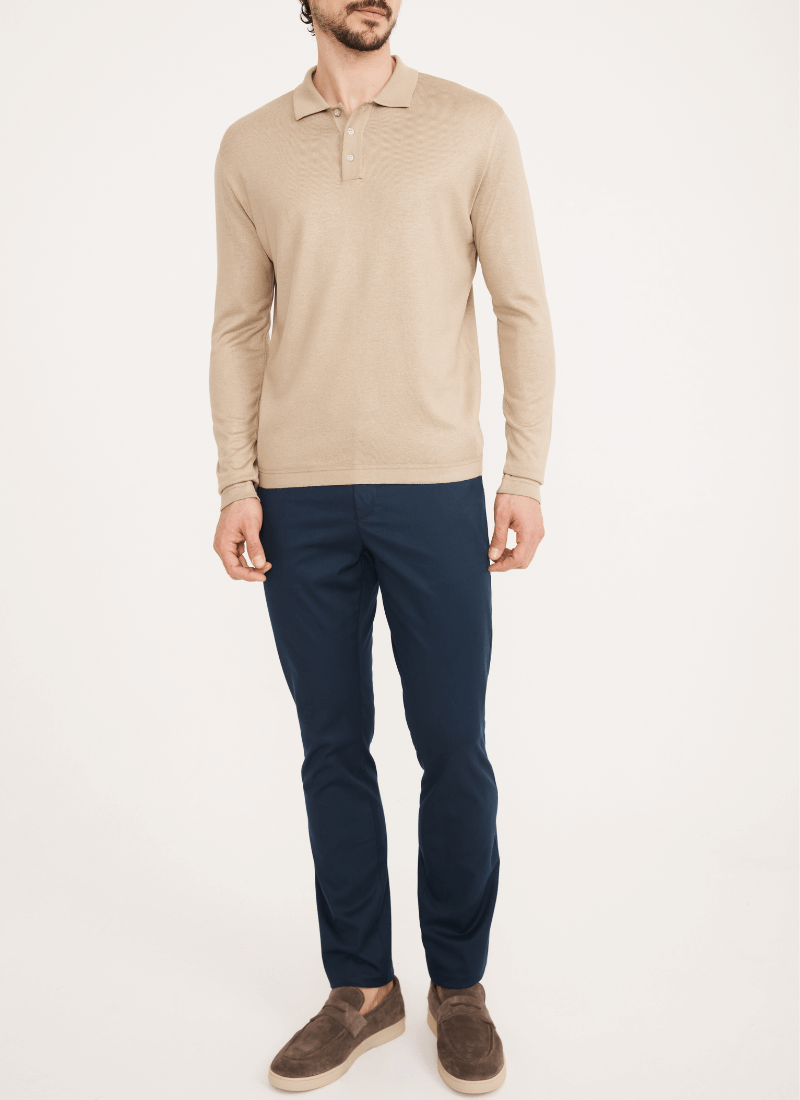 A Polo Masculina Tricot Vibe é a tradução do equilíbrio entre sofisticação e conforto. Com design minimalista e toque suave, a peça apresenta gola clássica com fechamento em botões e acabamento canelado sutil, realçando o caimento elegante.