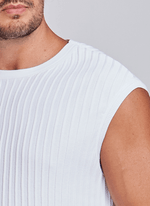 A regata masculina em tricot surge como resposta ao novo verão masculino: mais intencional, mais elegante e menos óbvio. Com estrutura canelada vertical, a peça alonga a silhueta e cria um visual limpo, atual e extremamente sofisticado, mesmo em propostas minimalistas.