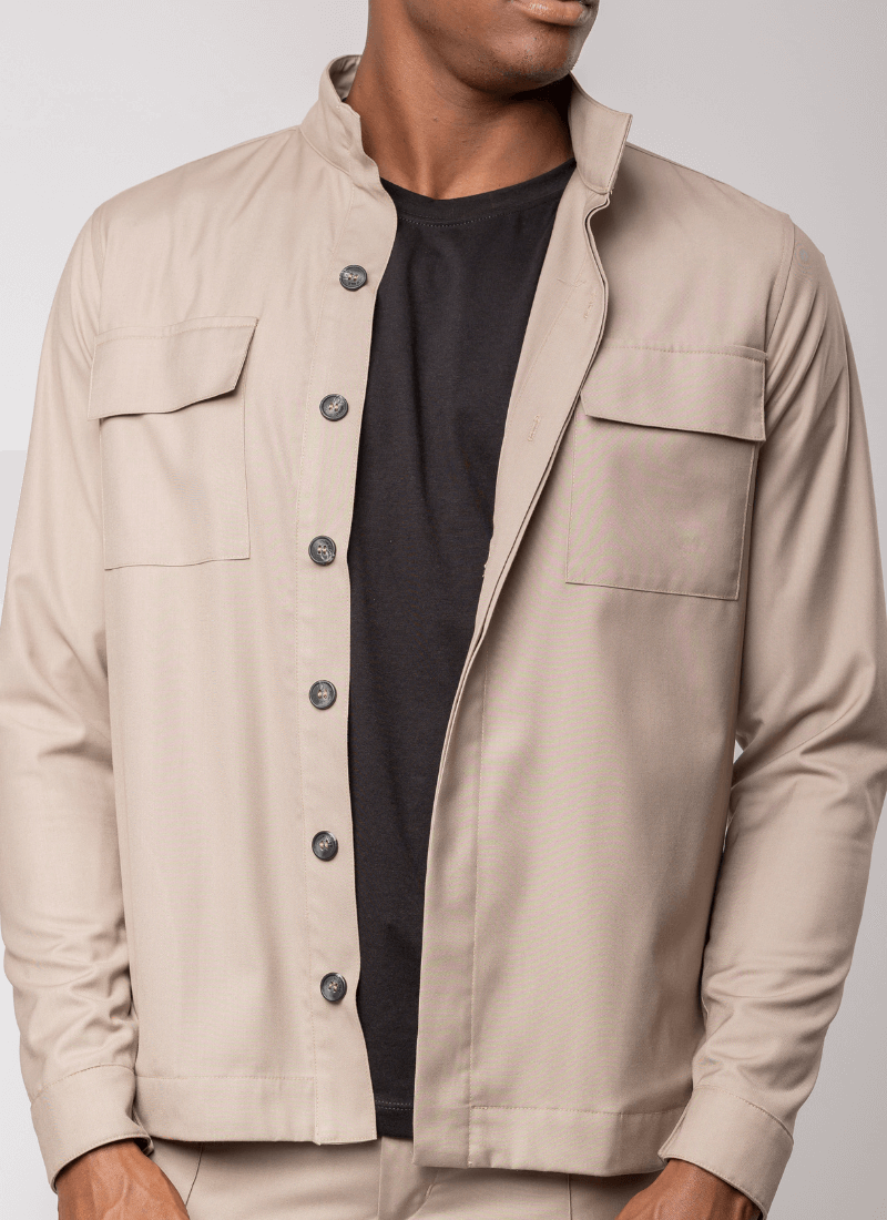 ModaCamisa MasculinaJaqueta MasculinaOvershirt Masculina Alfaiataria Chrono Bege Escuro