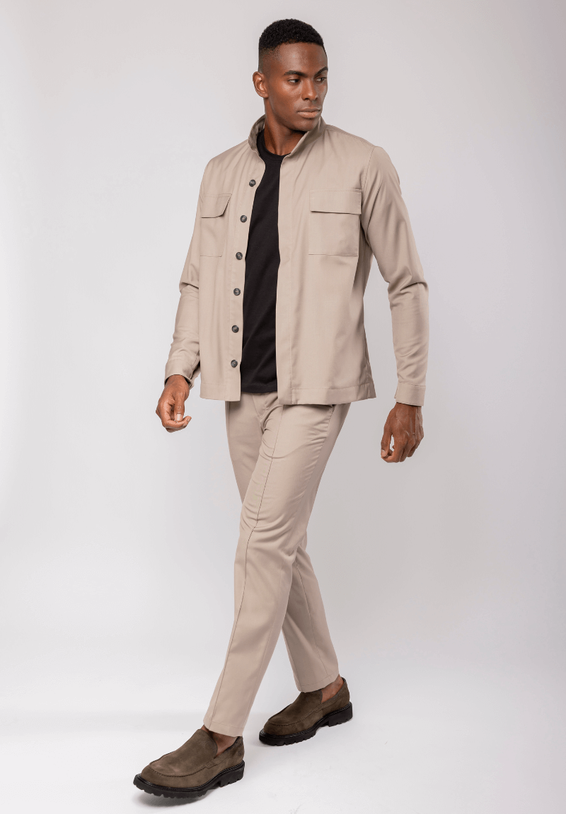 Overshirt Masculina Alfaiataria Chrono Bege Escuro