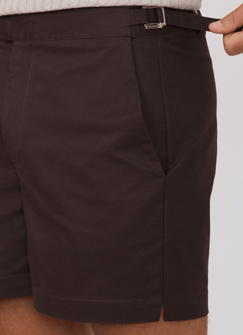 A peça apresenta o exclusivo side buckle, um ajuste lateral de metal que dispensa cinto e entrega um caimento perfeito ao corpo. Esse detalhe, presente em peças de alfaiataria premium ao redor do mundo, reforça a proposta minimalista e moderna que acompanha o crescimento das buscas por shorts masculino de alfaiataria, shorts social masculino e shorts elegante masculino.