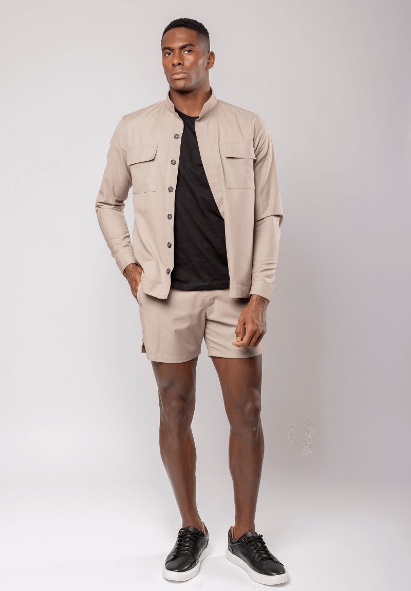 Shorts Masculino Alfaiataria Chrono Bege Escuro